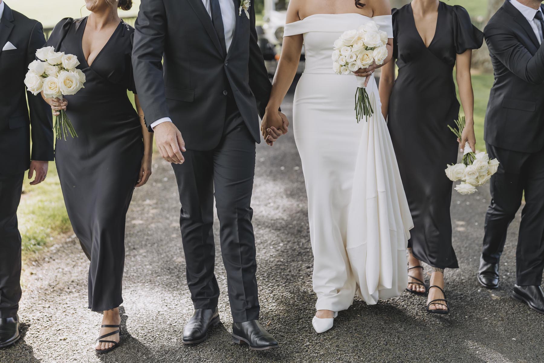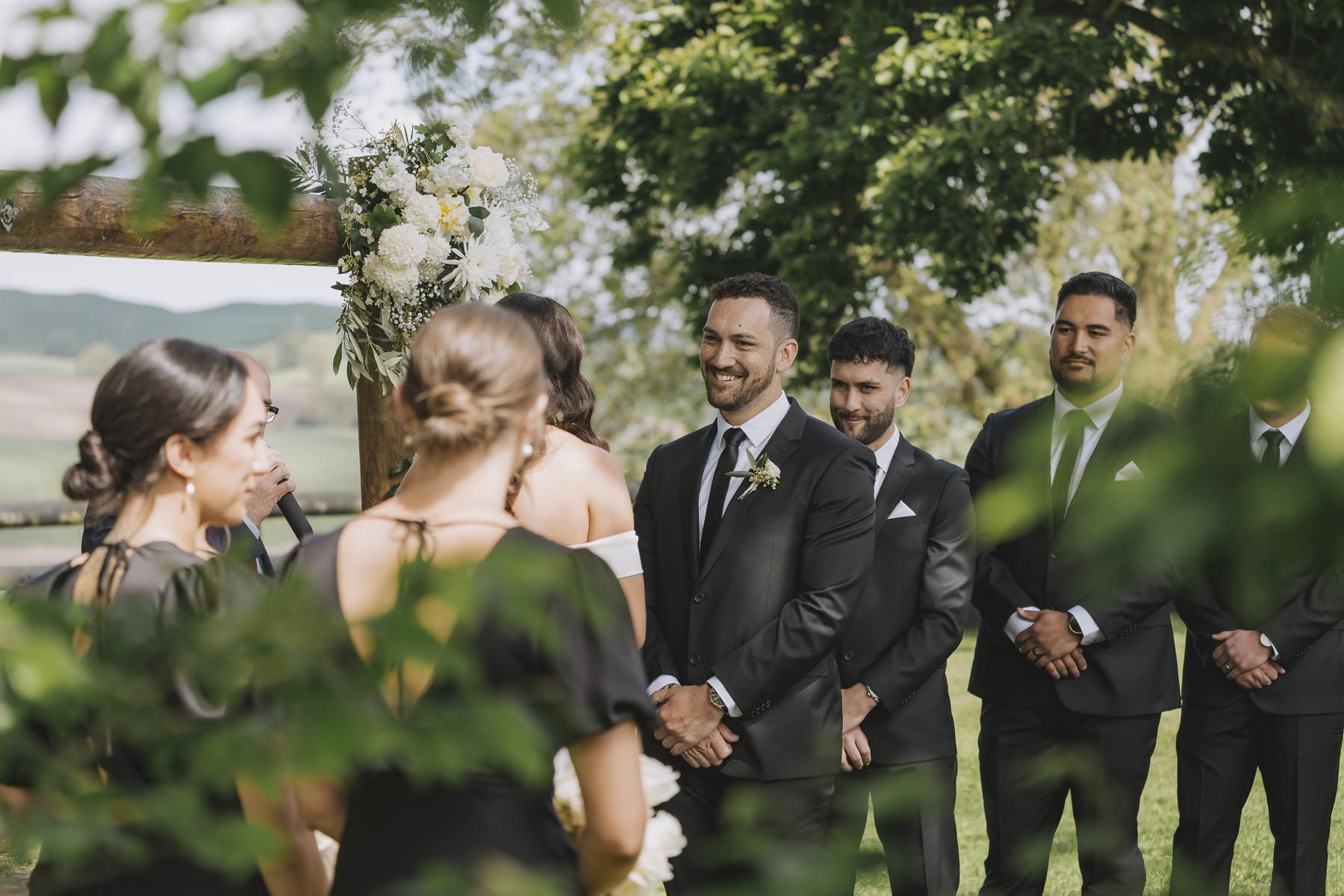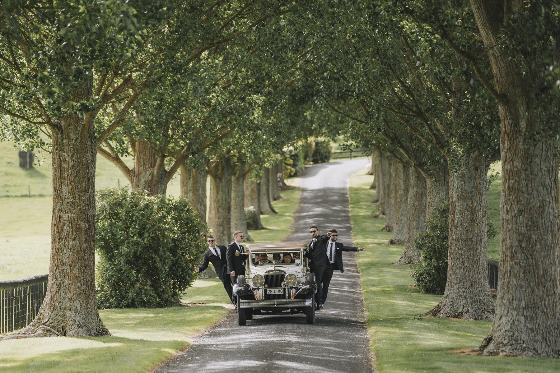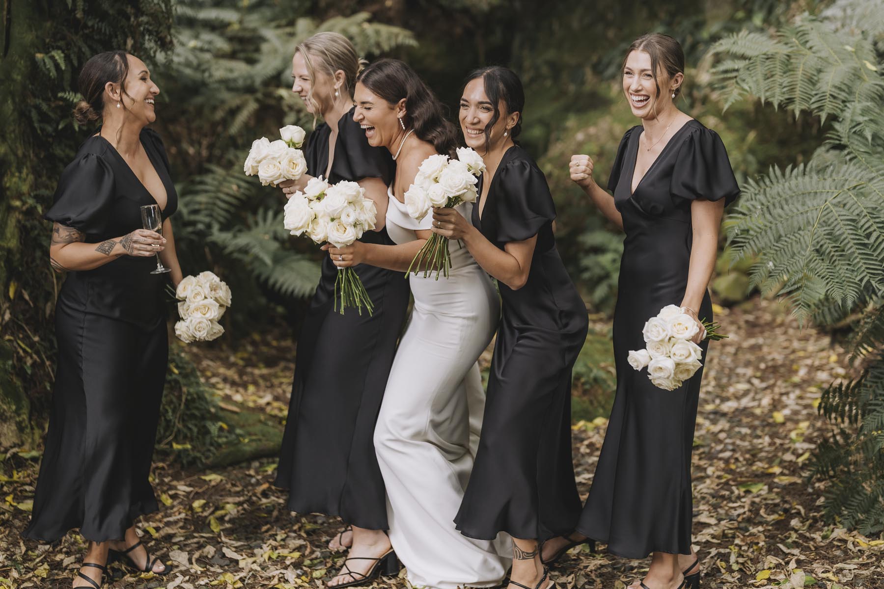 I’ve been lucky enough to shoot at The Red Barn many times, but this was my very first chance to explore their secret grotto. It’s a pocket of native bush hidden away from the main action, and honestly, it feels a bit magical. Jasmin and Kalen disappeared there with their bridal party for some time out, and it turned out to be the dreamiest spot for photos, soft light, rock and fern surrounds, such a great zone to slip away to.