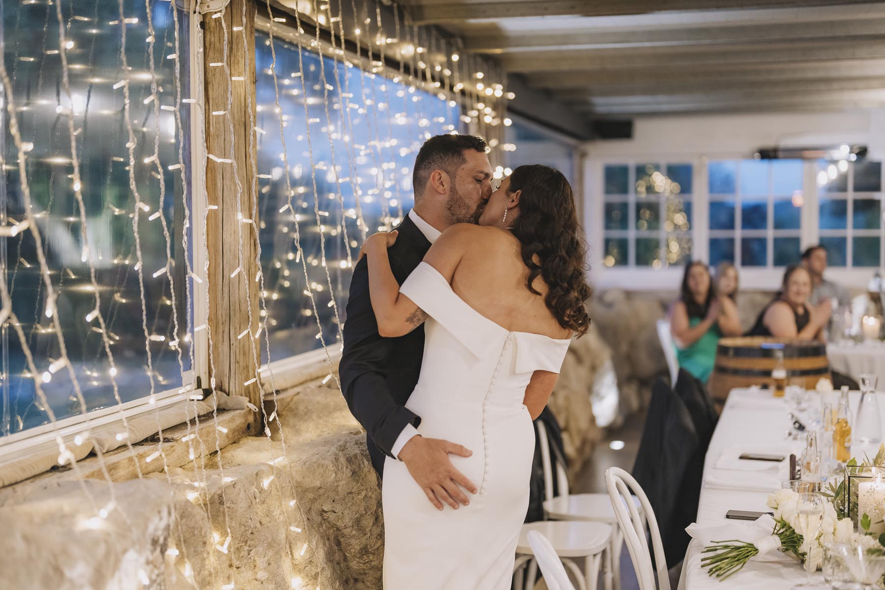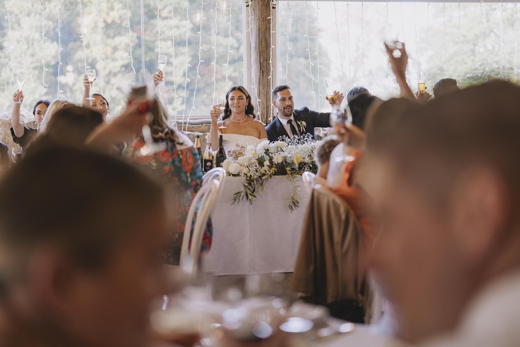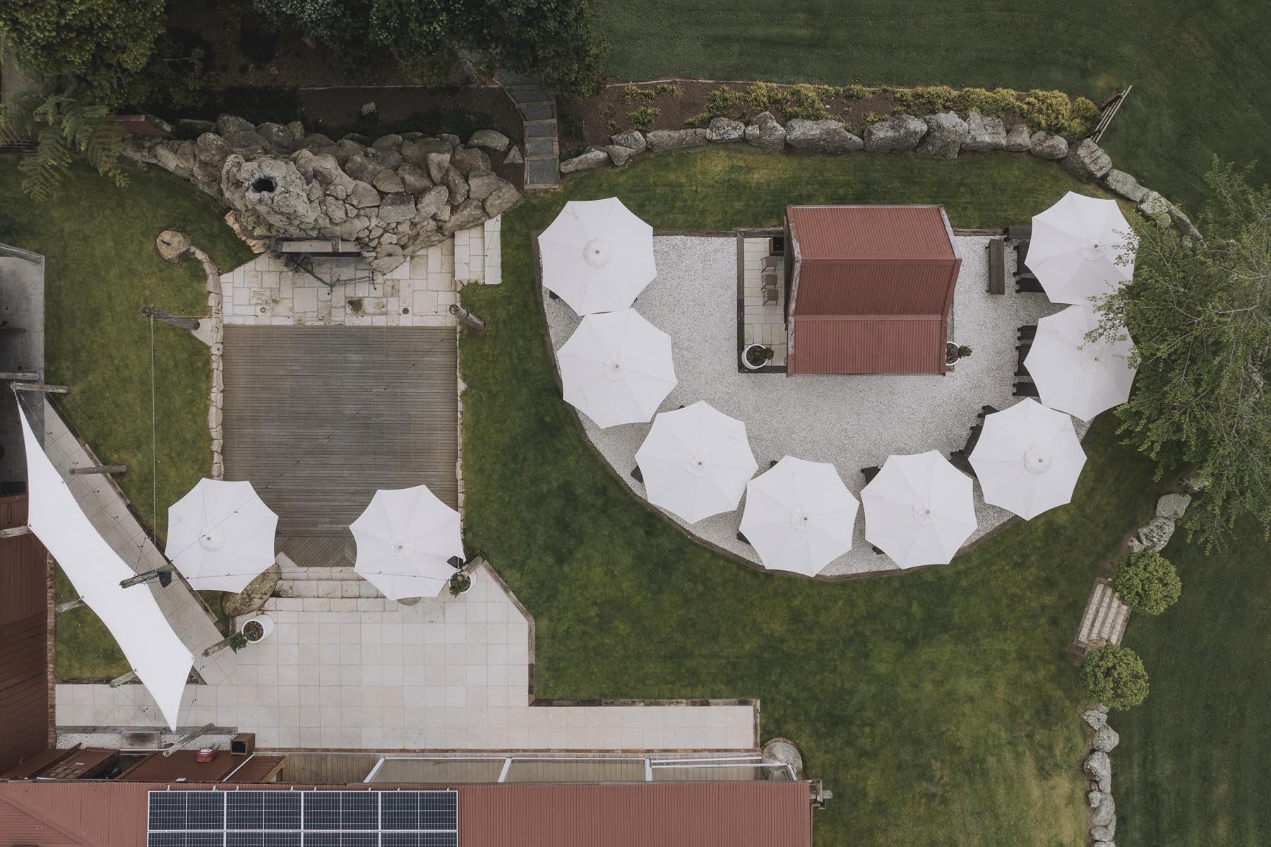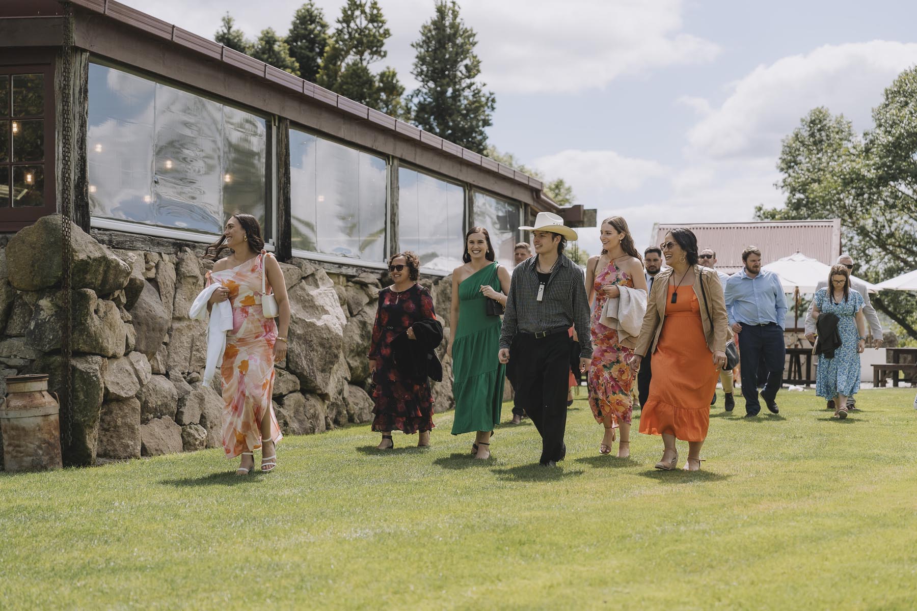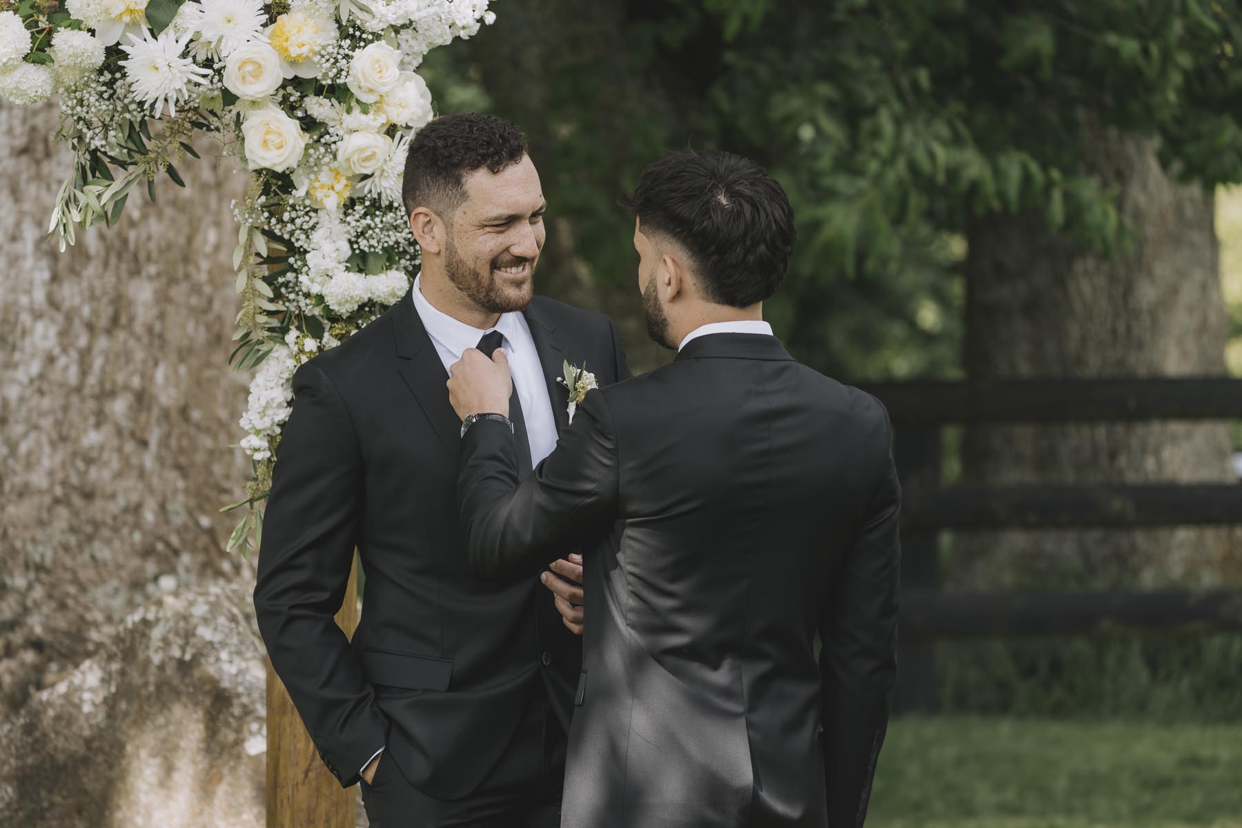 I’ve been lucky enough to shoot at The Red Barn many times, but this was my very first chance to explore their secret grotto. It’s a pocket of native bush hidden away from the main action, and honestly, it feels a bit magical. Jasmin and Kalen disappeared there with their bridal party for some time out, and it turned out to be the dreamiest spot for photos, soft light, rock and fern surrounds, such a great zone to slip away to.