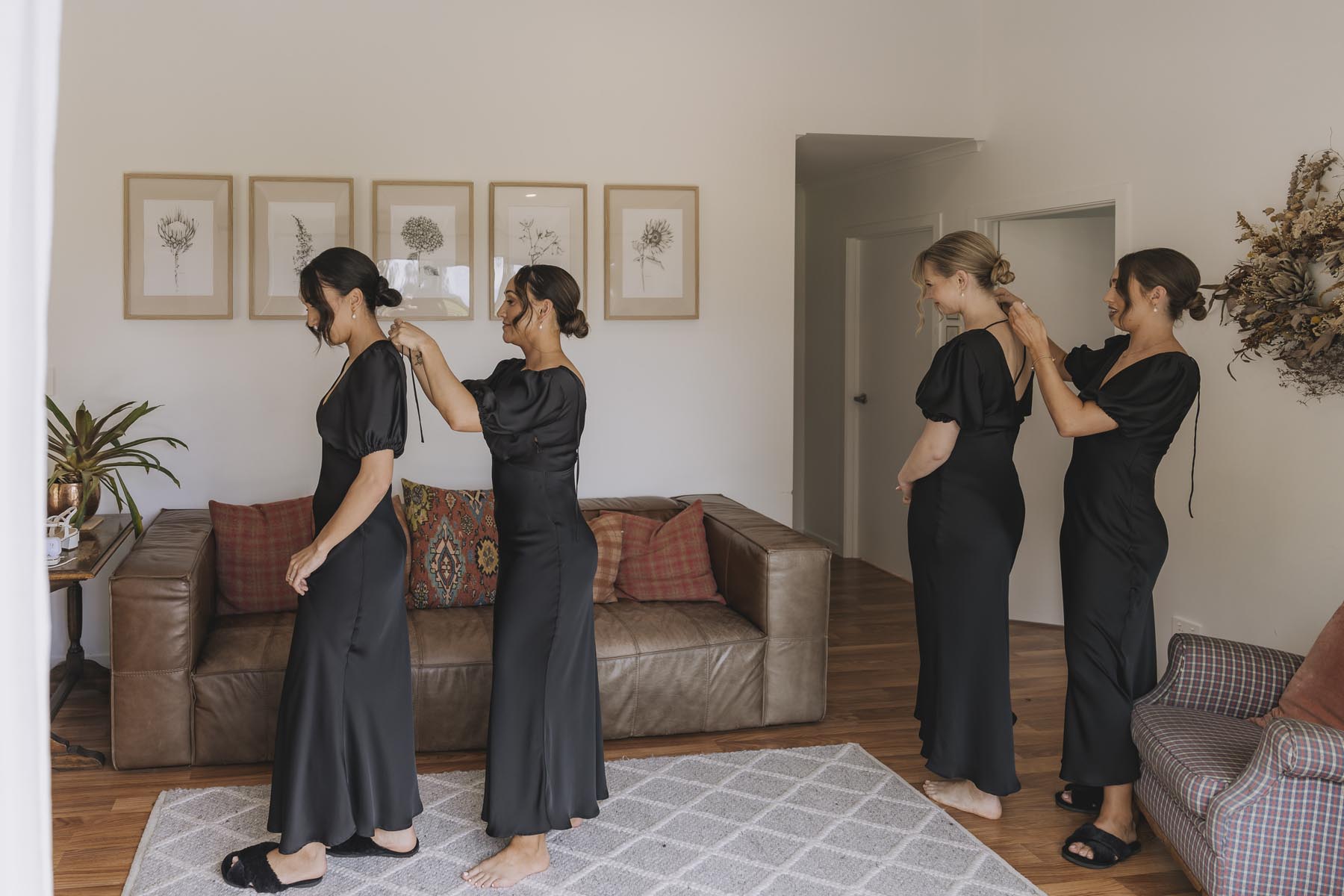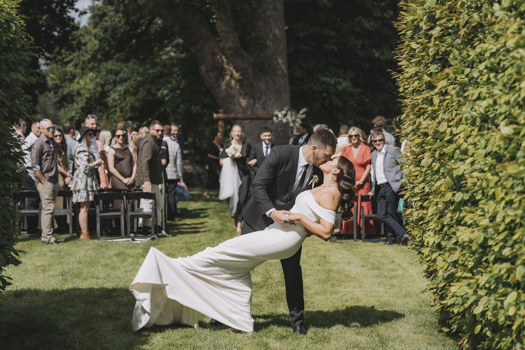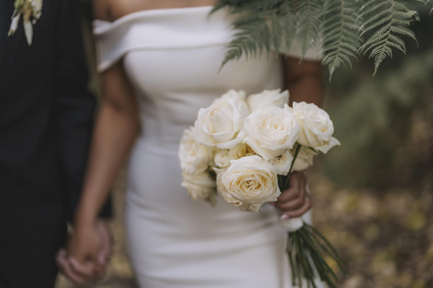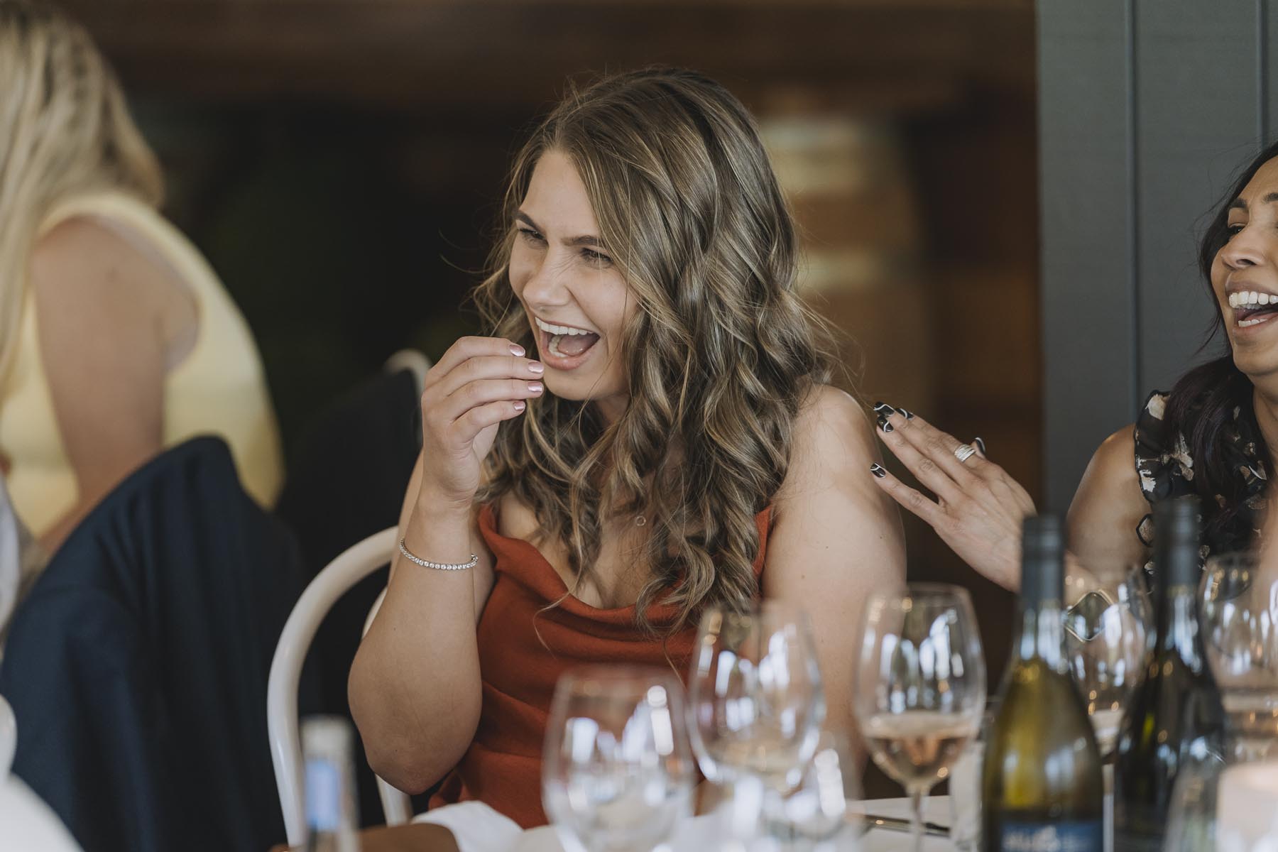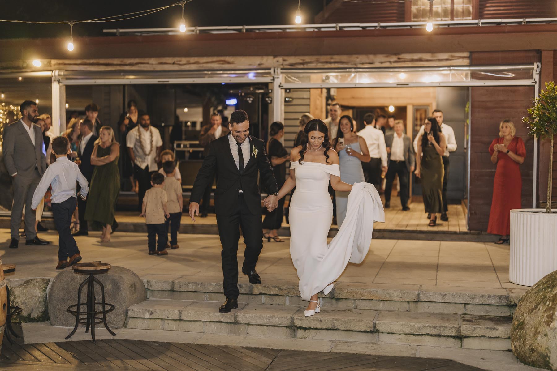 I’ve been lucky enough to shoot at The Red Barn many times, but this was my very first chance to explore their secret grotto. It’s a pocket of native bush hidden away from the main action, and honestly, it feels a bit magical. Jasmin and Kalen disappeared there with their bridal party for some time out, and it turned out to be the dreamiest spot for photos, soft light, rock and fern surrounds, such a great zone to slip away to.