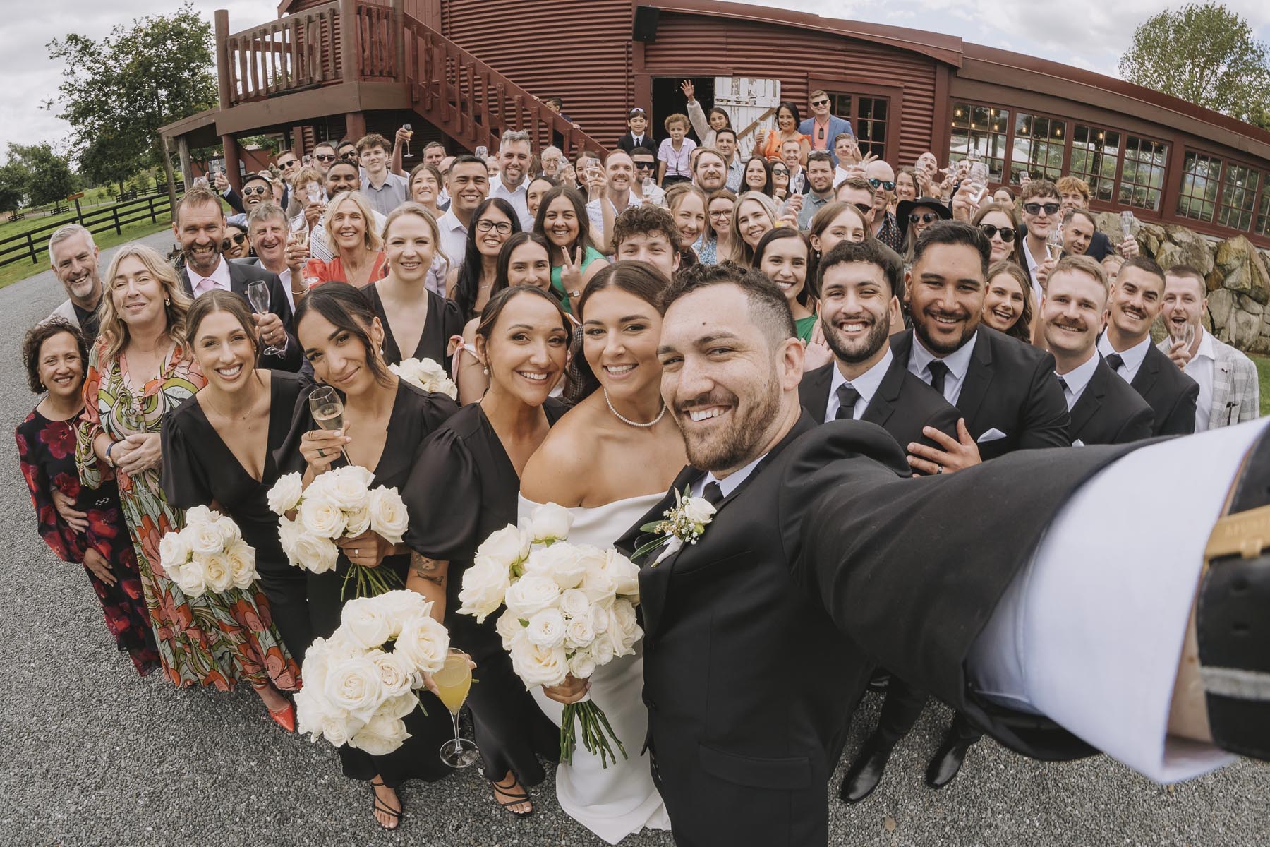 Jasmin and Kalen tied the knot with a beautiful Red Barn Wedding, and what a day it was. I’ve photographed plenty of weddings across the Waikato, and The Red Barn is always a favourite. Rolling hills, big skies, and a barn that oozes character, it’s a recipe for a great party.